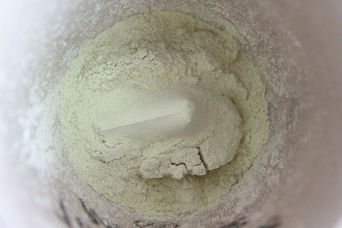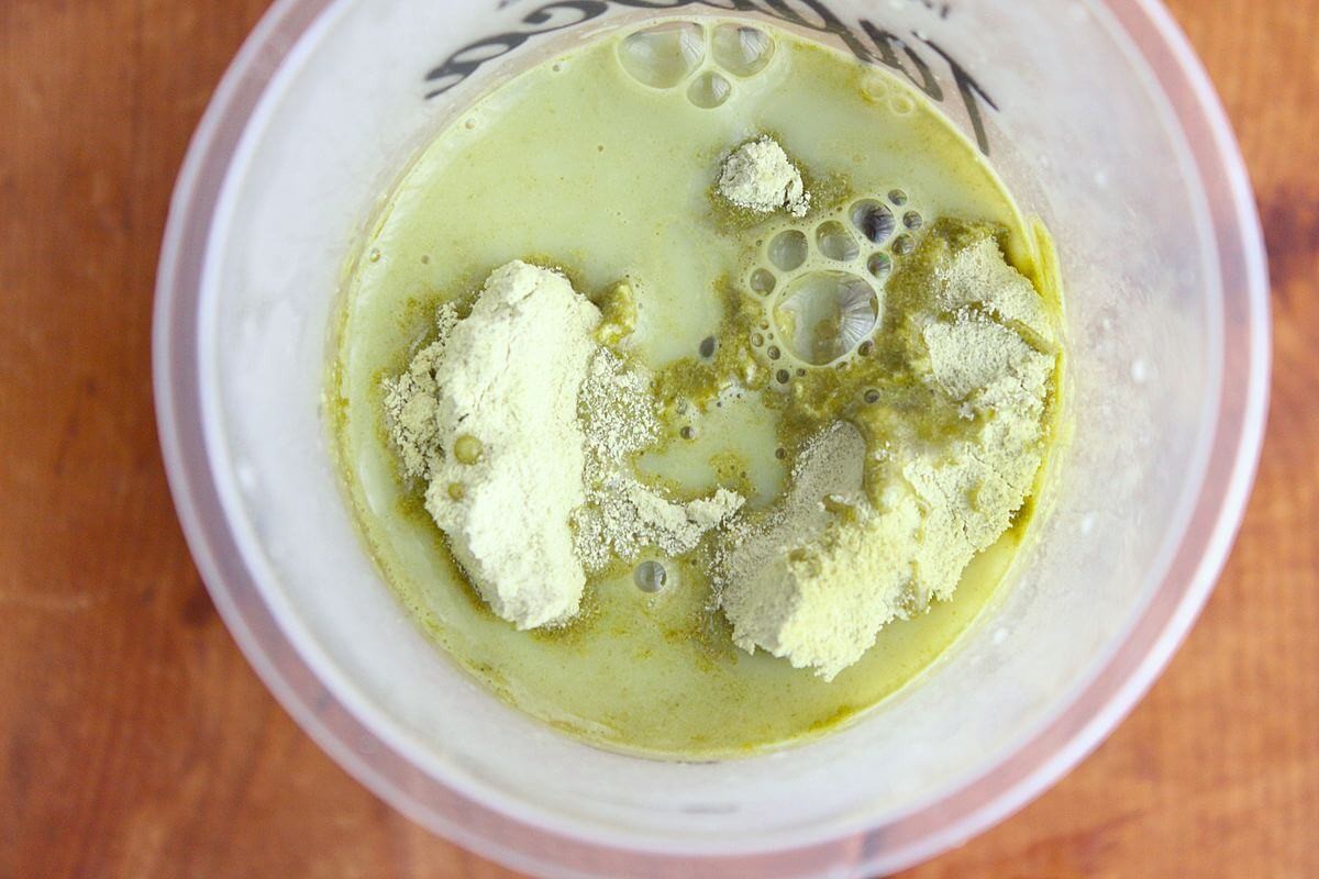 2、1に抹茶ミルクティーの粉末を入れます。
