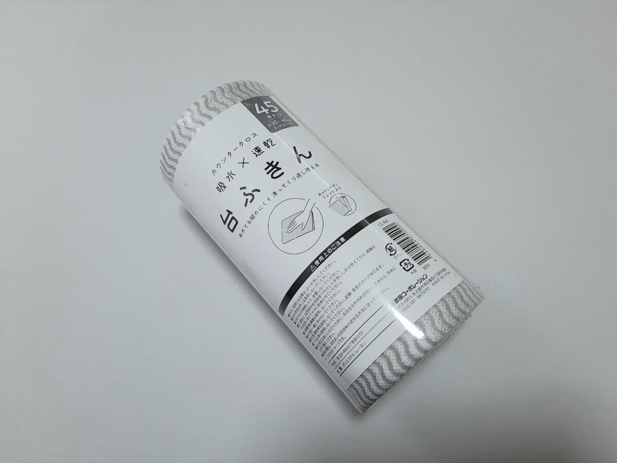 シックなデザインでどんなインテリアにもマッチしそうな台ふきん。ロール状になっているのでそのまま立てておいてもOK。