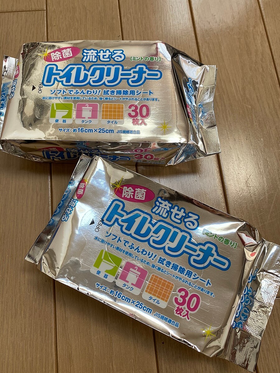 こちらのトイレ用クリーナーは30枚入りで45円(税抜)。