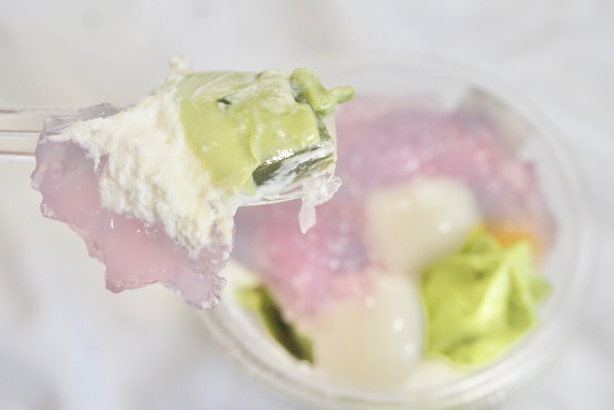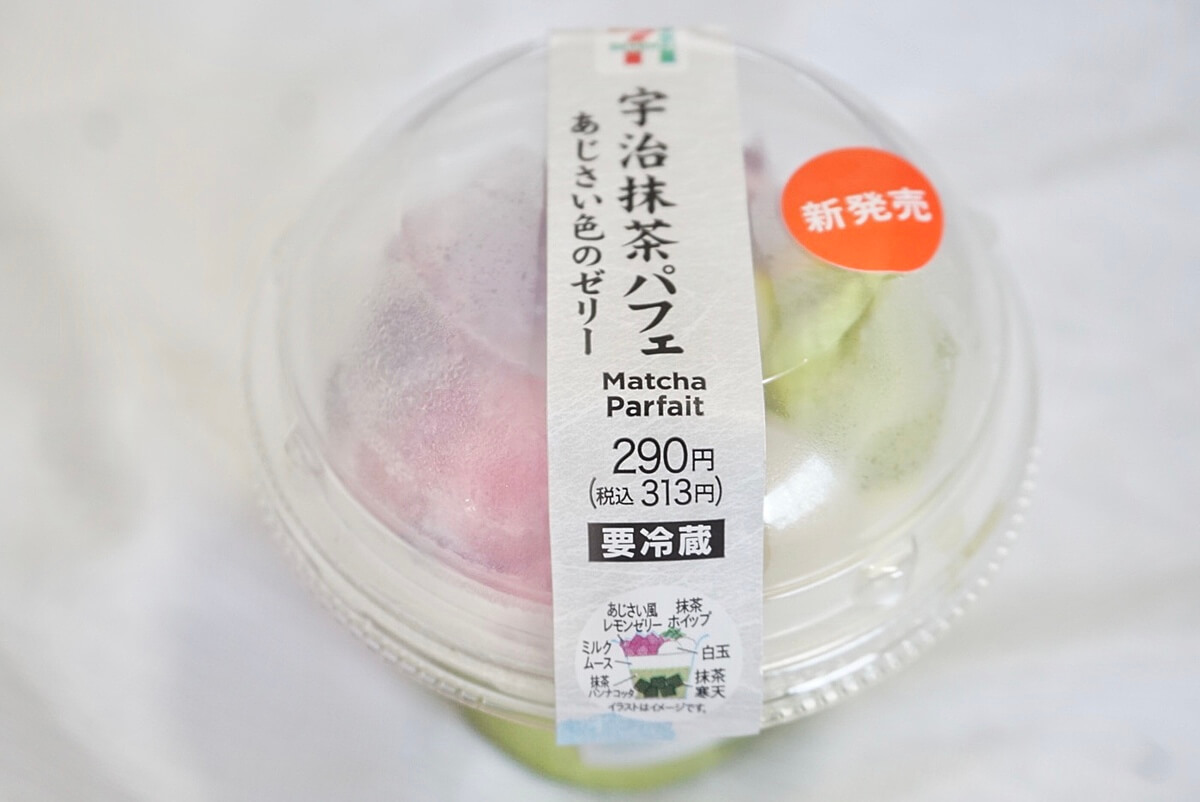 セブンで買える「宇治抹茶パフェあじさい色のゼリー」をご紹介しました。