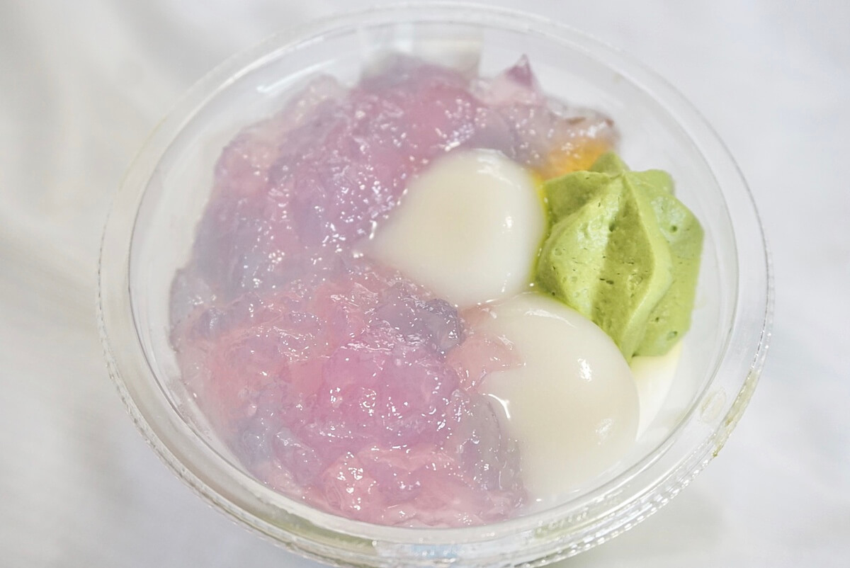 そんな時、セブンイレブンのスイーツコーナーで「宇治抹茶パフェあじさい色のゼリー」を見つけました。