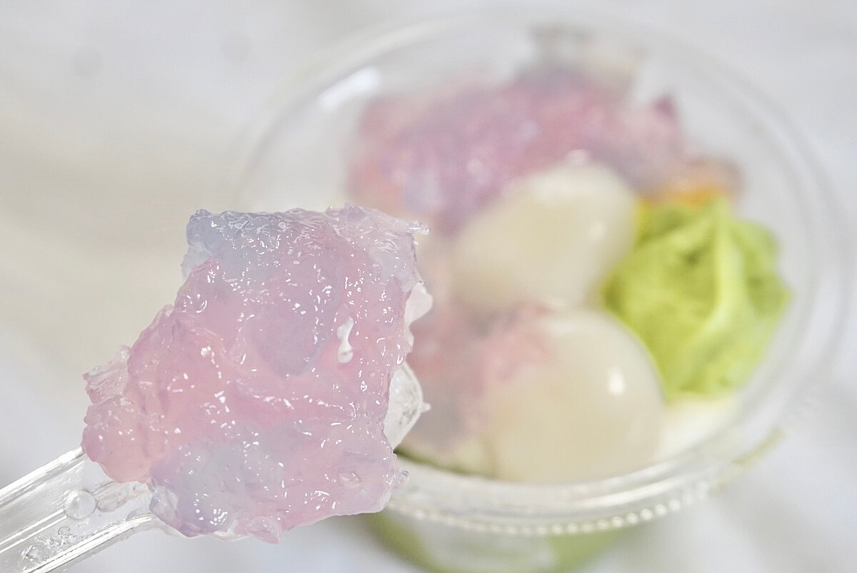 鮮やかなあじさい色のゼリーはしっかりとレモン味