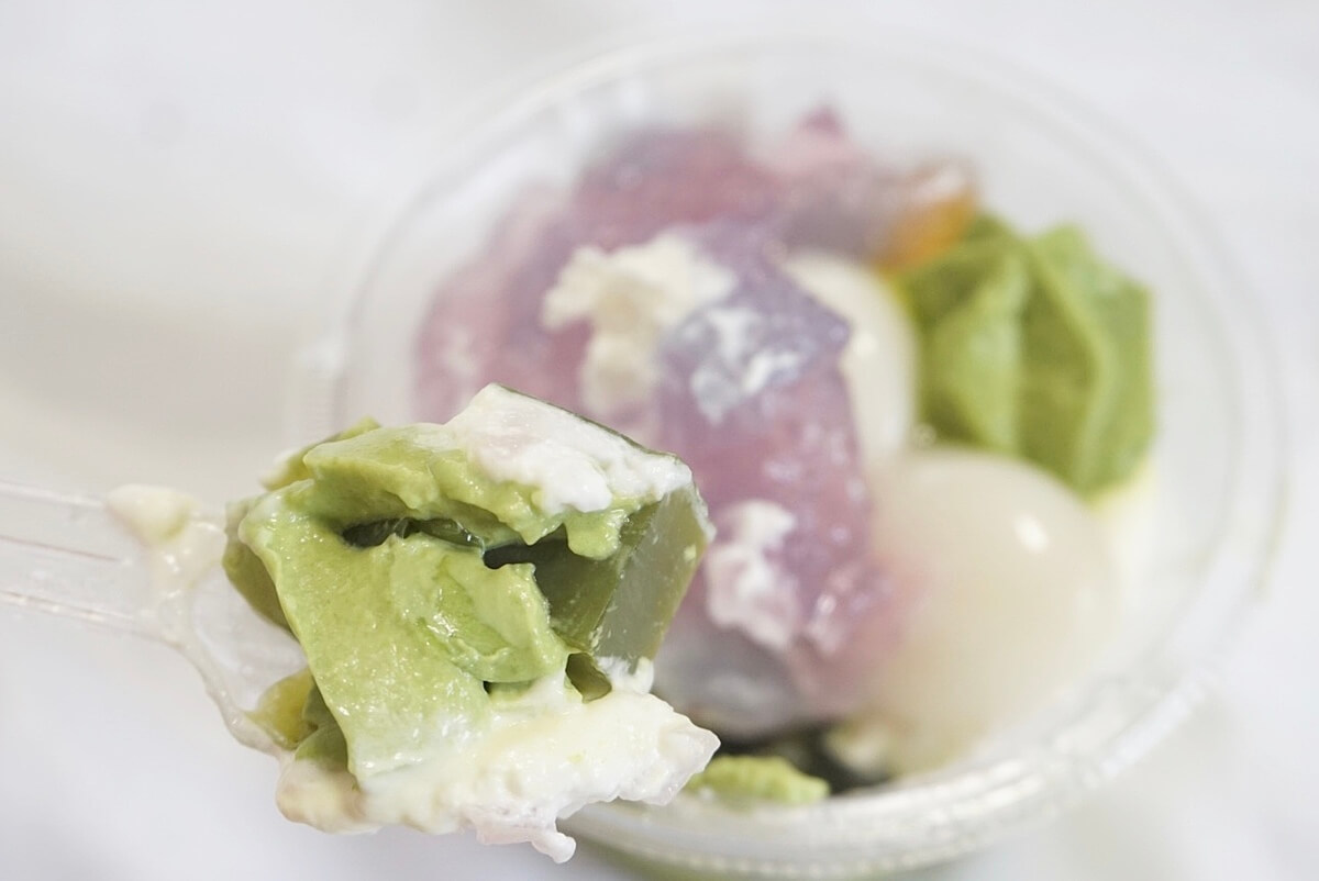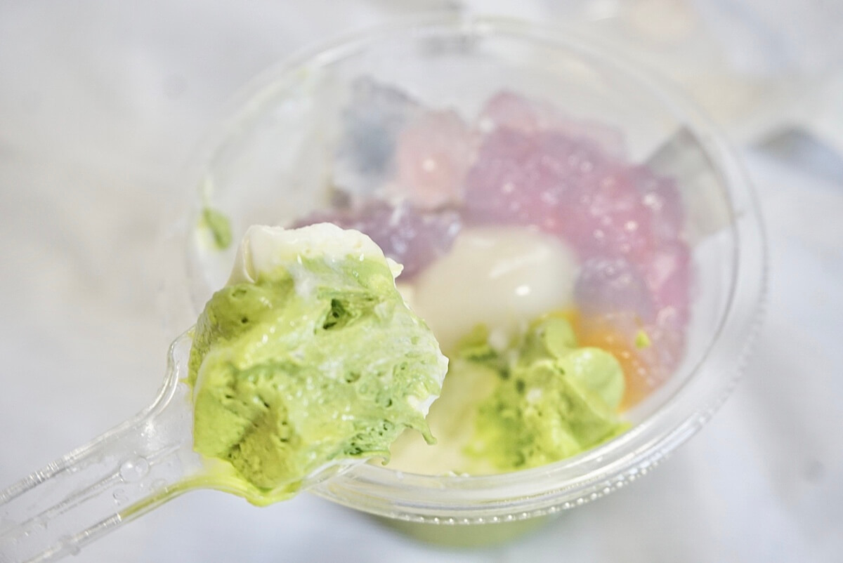 抹茶寒天はほろ苦く、歯ごたえのある硬さがアクセントになっています。