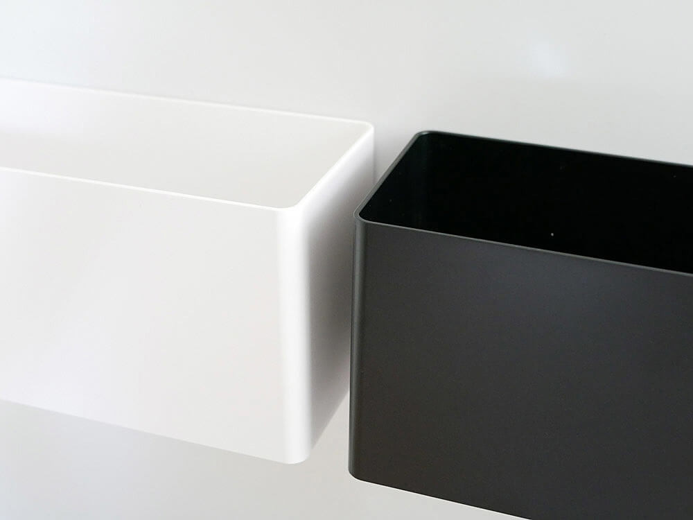 角は丸みをつけ柔らかい印象に、それでいて並べて置いてもすっきり見せてくれるのが特徴。モノトーンなのでどこに置いても馴染んでくれますよ。