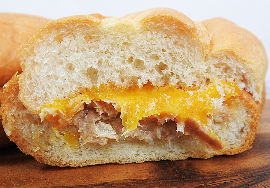 中身を確認すると、ツナを包み込むようにチェダーチーズがとろけていました。お持ち帰りして時間が経ってしまったためチーズやや固まっていたのが残念ですが、美味しかったです。