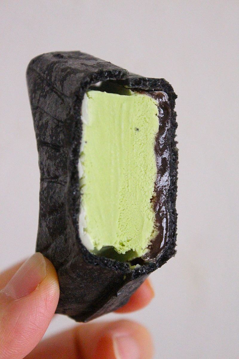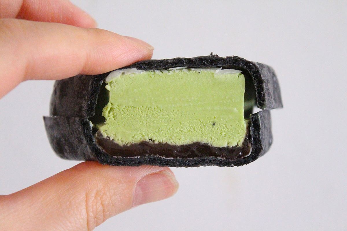 宇治抹茶アイスを、竹炭入りのまっ黒なたい焼きモナカで包んでいます。