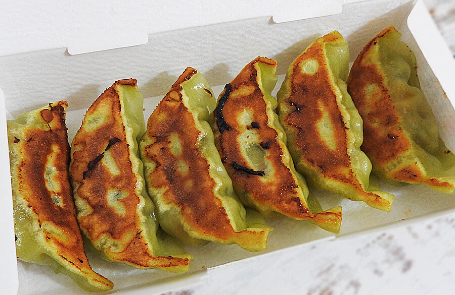 餃子の皮はほうれん草を使っているためみどり色に。いかにも野菜がたくさん入っている感じがしますね。ベジタブル餃子には、ニラやニンニクは入っていません。外箱を開けても、餃子独特な強いにおいがしませんでしたよ。ちなみに、お肉も入っていません!(※3)