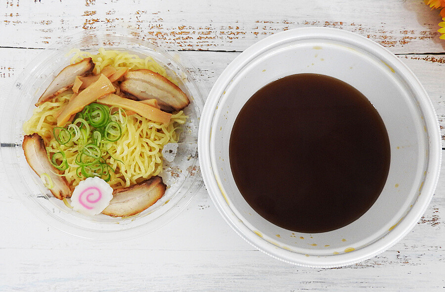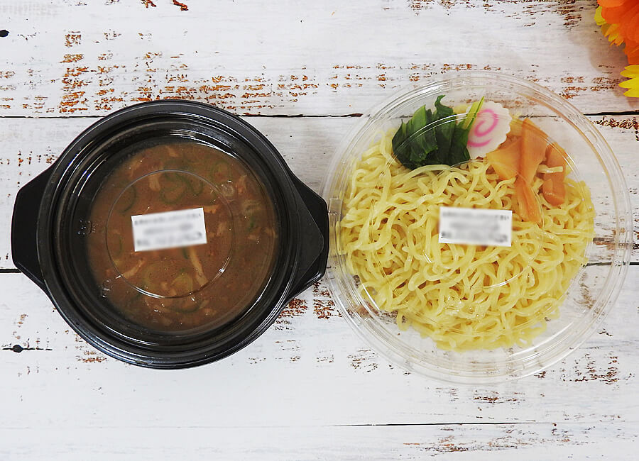 幸楽苑といえば、麺類を忘れてはいけません。今回は幸楽苑「濃厚魚介つけめん1.5」540円(税込)をお持ち帰りしてみました。ちなみに、幸楽苑では麺類などの一部商品は容器代60円が加算されます(※2)。なので、容器代を含めると600円(税込)となりました。
