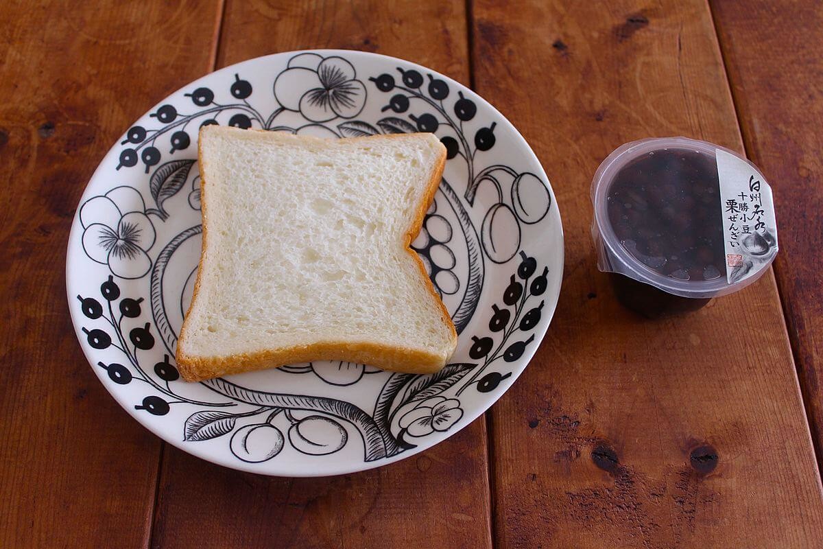 「白州名水 十勝小豆 栗ぜんざい」の半分と、「無添加食パン」を組み合わせて作るのは、