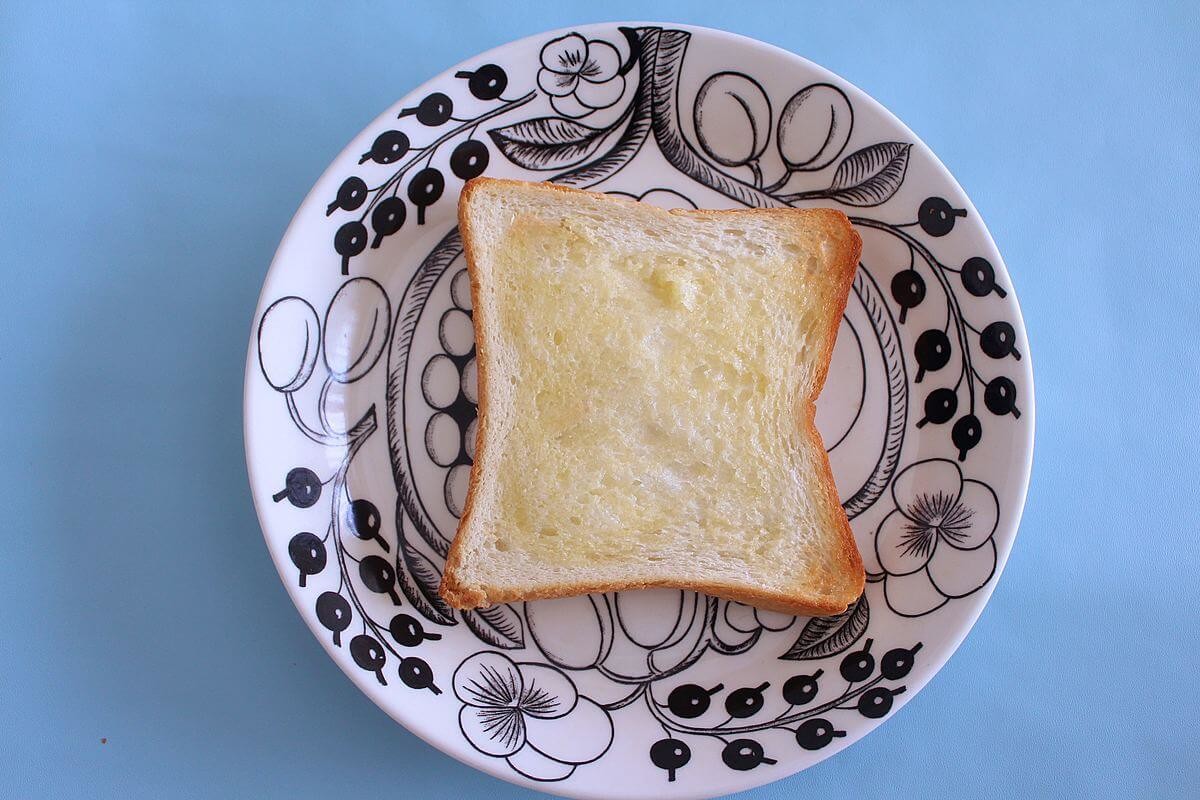 まずは、食パンをトーストして、バターを塗ります!
