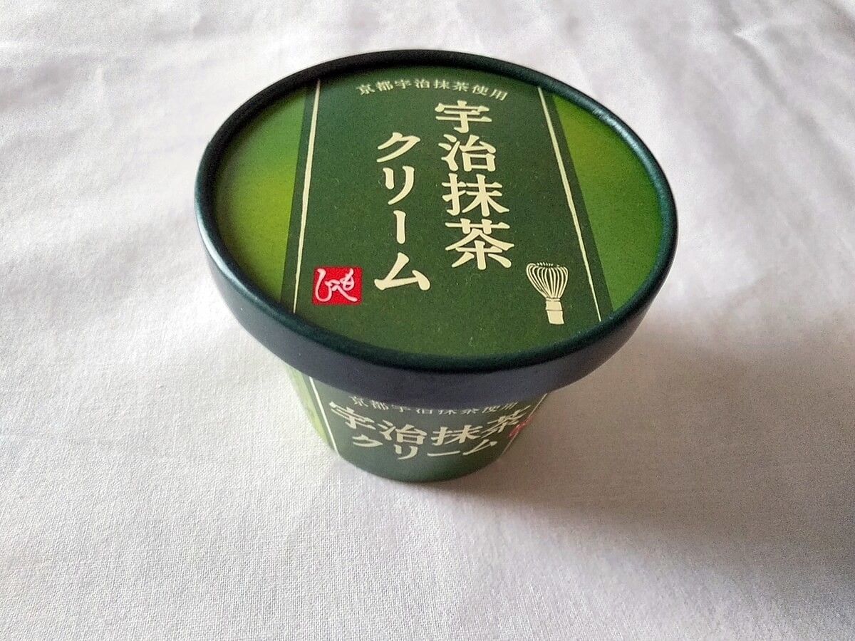 濃い緑色のパッケージが印象的な宇治抹茶クリーム。140g・194円(税込)のお手頃価格に惹かれて購入しました。