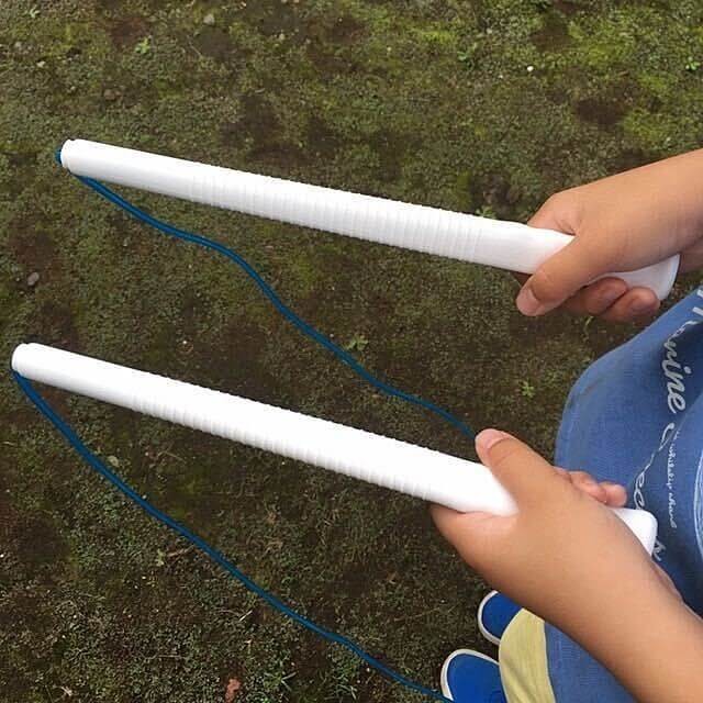 それによって、縄跳びが苦手な子(特に縄を回して跳ぶことにまだ慣れていない子)が、縄を前に回す動作がしやすくなり、縄を回す感覚をつかむことができます。