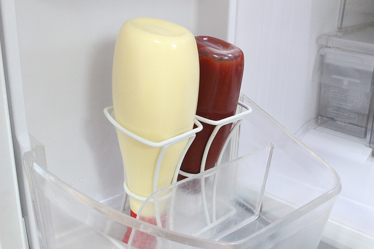 使いかけのマヨネーズやケチャップボトルを冷蔵庫から取り出して食卓に並べると、自立することなく倒れてしまったり、なかなか中身が出てこないということはよくありませんか。