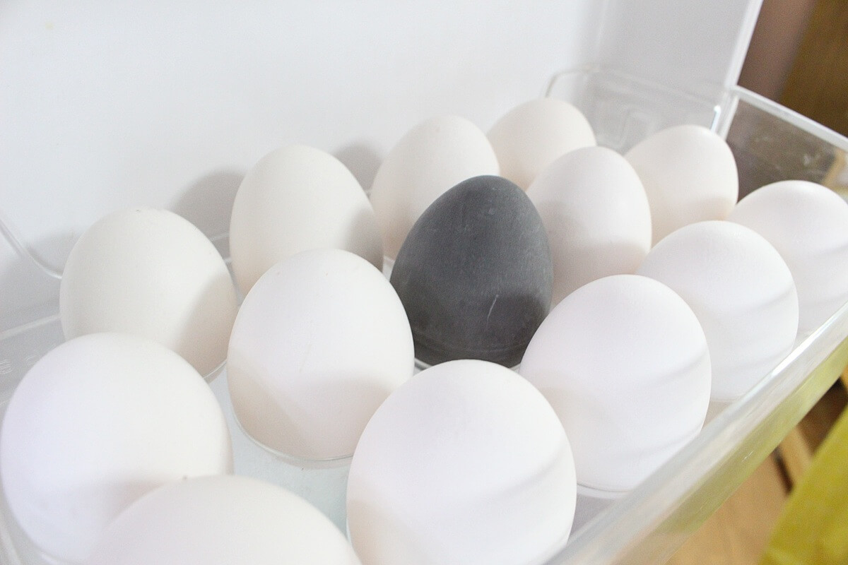 卵ケースに生卵と一緒に入れてみると……勘違いしてしまうほどよく馴染みます。