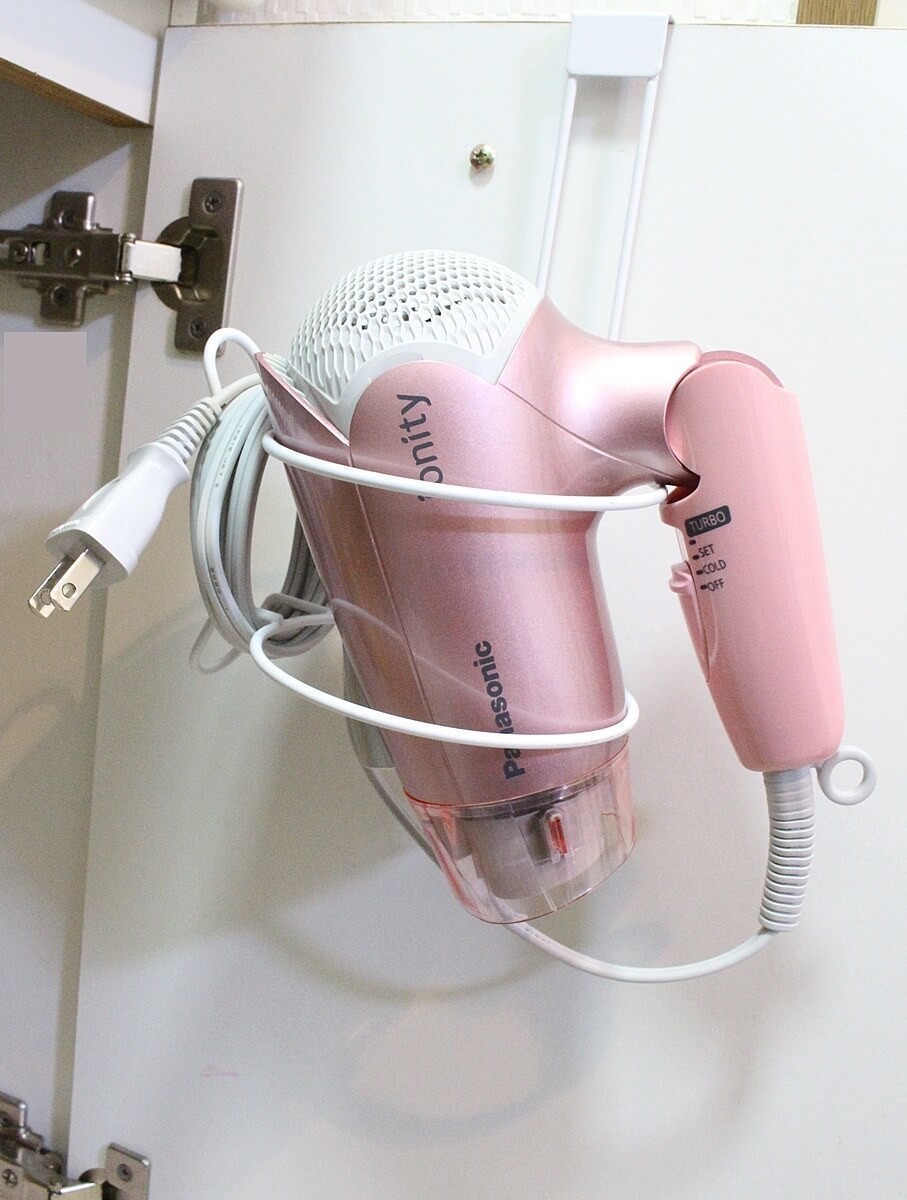 扉に引っかけてドライヤーをすっきり収納できるとのこと。