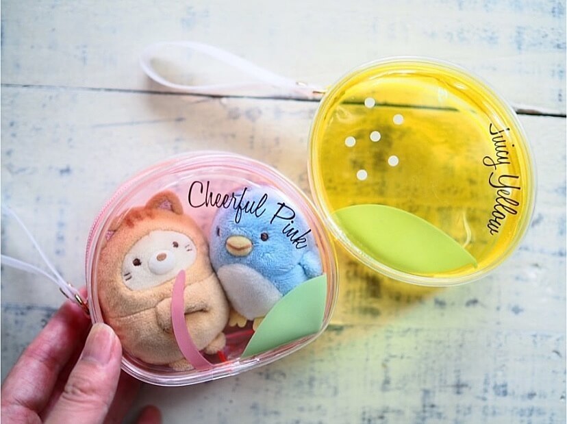 ピーチとレモンのデザインで、ストラップ付きなので持ち運びも楽々ですよ。