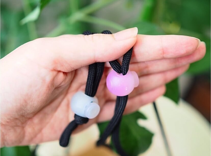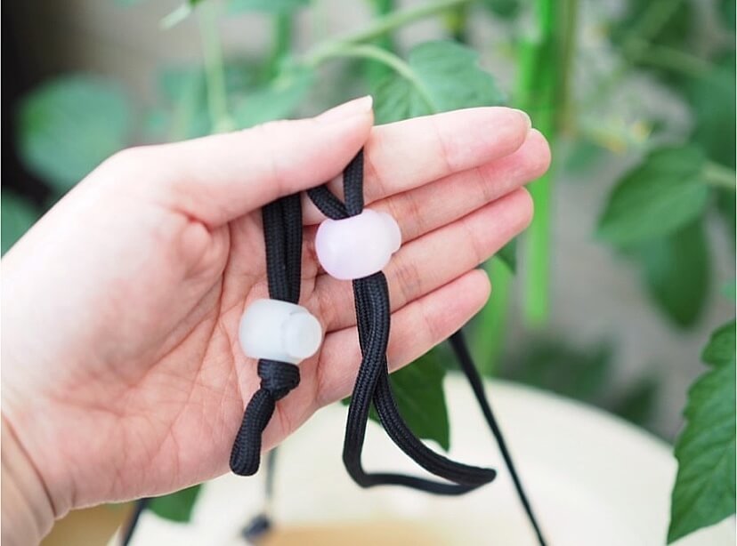 さらに、長さ調整ができるこちらのボール状の留め具は「紫外線チェッカー」になっていて、普段は半透明ですが屋外に出て紫外線を浴びると濃い色に変化します!