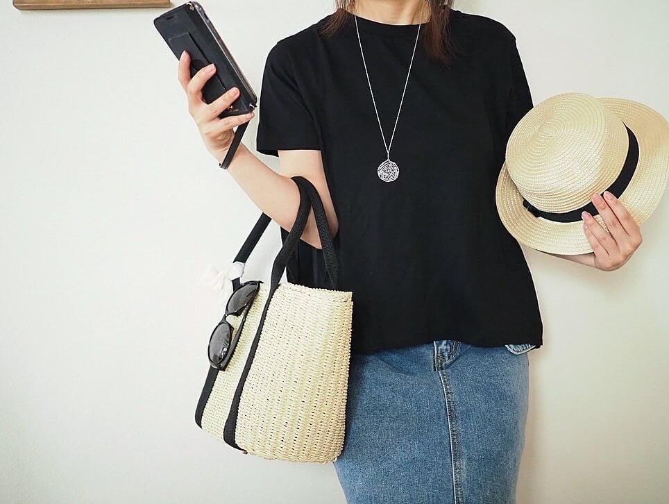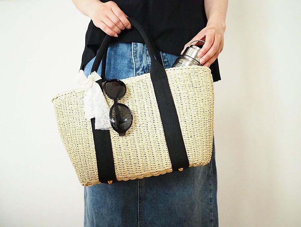 同じく夏のトレンドアイテム“かごバッグ”に引っ掛けてもおしゃれなアクセントに♪