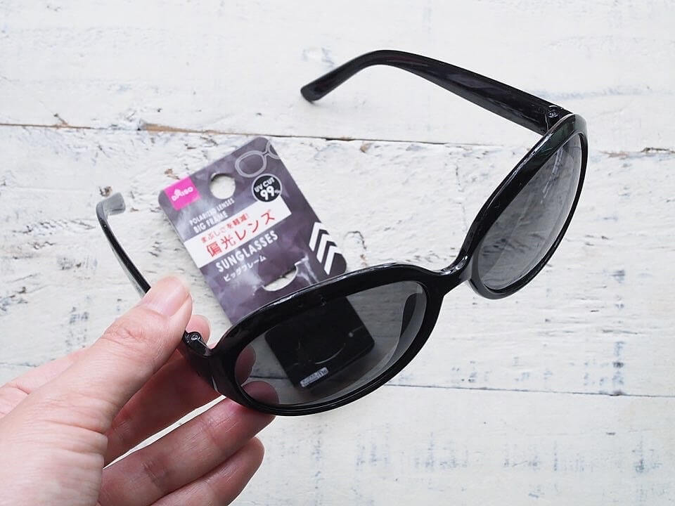 続いてご紹介するもダイソー商品より「 サングラス (偏光レンズ ビッグフレーム)」です。夏のお出かけやコーデにお役立ちのサングラスがワンコインで手に入るなんてビックリ!