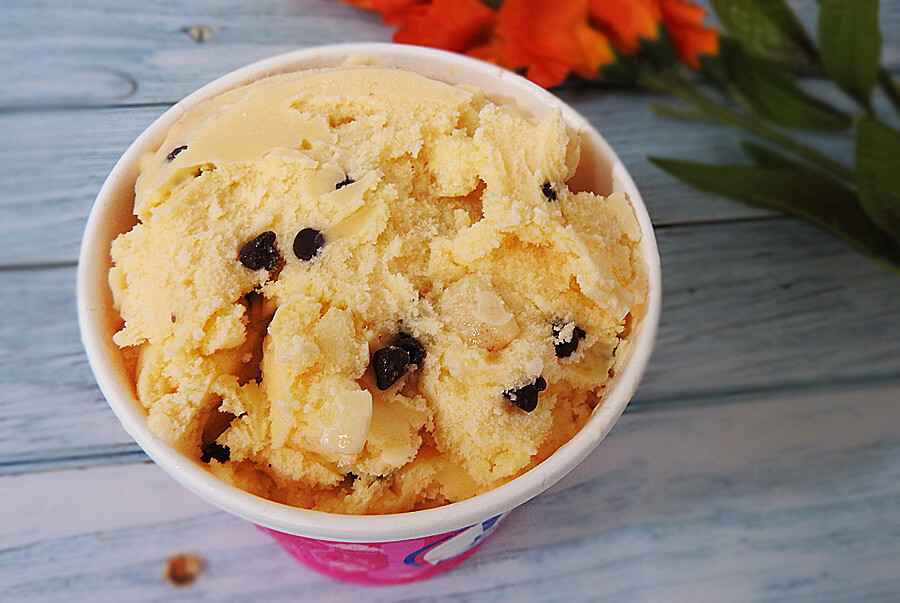 カリッカリのチョコチップが良いアクセントになって、とってもおいしい!アイスはほのかにキャラメルっぽさを感じましたが、言われないと気が付かない程度。「ほぼバニラアイス」という表現がしっくりくると思います。