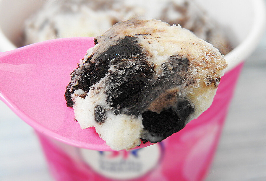個人的に大好きなフレーバー「クッキーアンドクリーム」をお持ち帰りしてみました。私の記憶が正しければ、クッキーアンドクリームはかなり昔からあった気がします。10年以上振りにいただけるとあって、テンションが上がりました。
