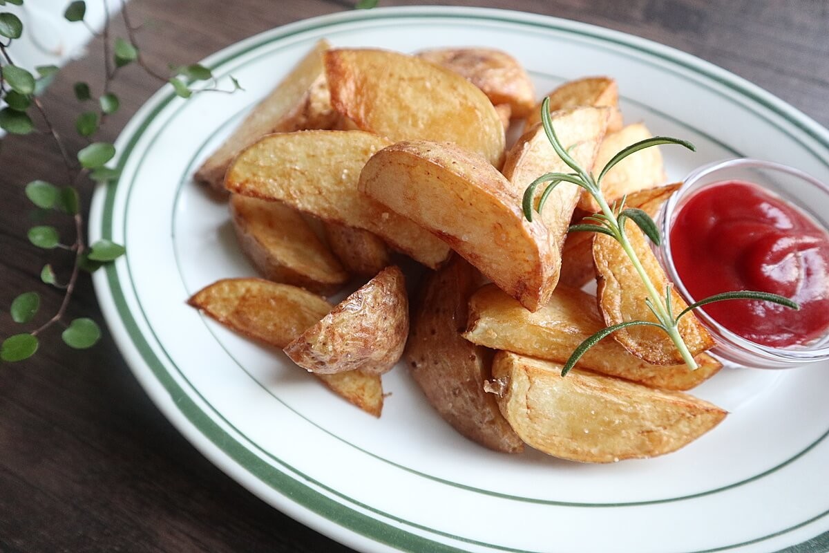 じゃがいもを切って、揚げただけのシンプルなポテトフライも、ガーリックソルトをガリガリするだけ!