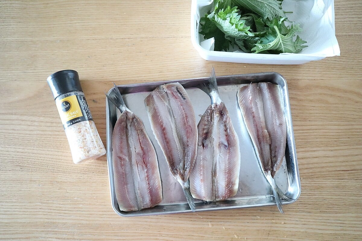 ※鰯は、塩をふってすこし置き、水分を出して臭みをとる。キッチンペーパーで水分をぬぐう。