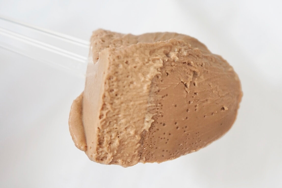 スプーンですくうと、かなりみっちりしていて、かたいです。