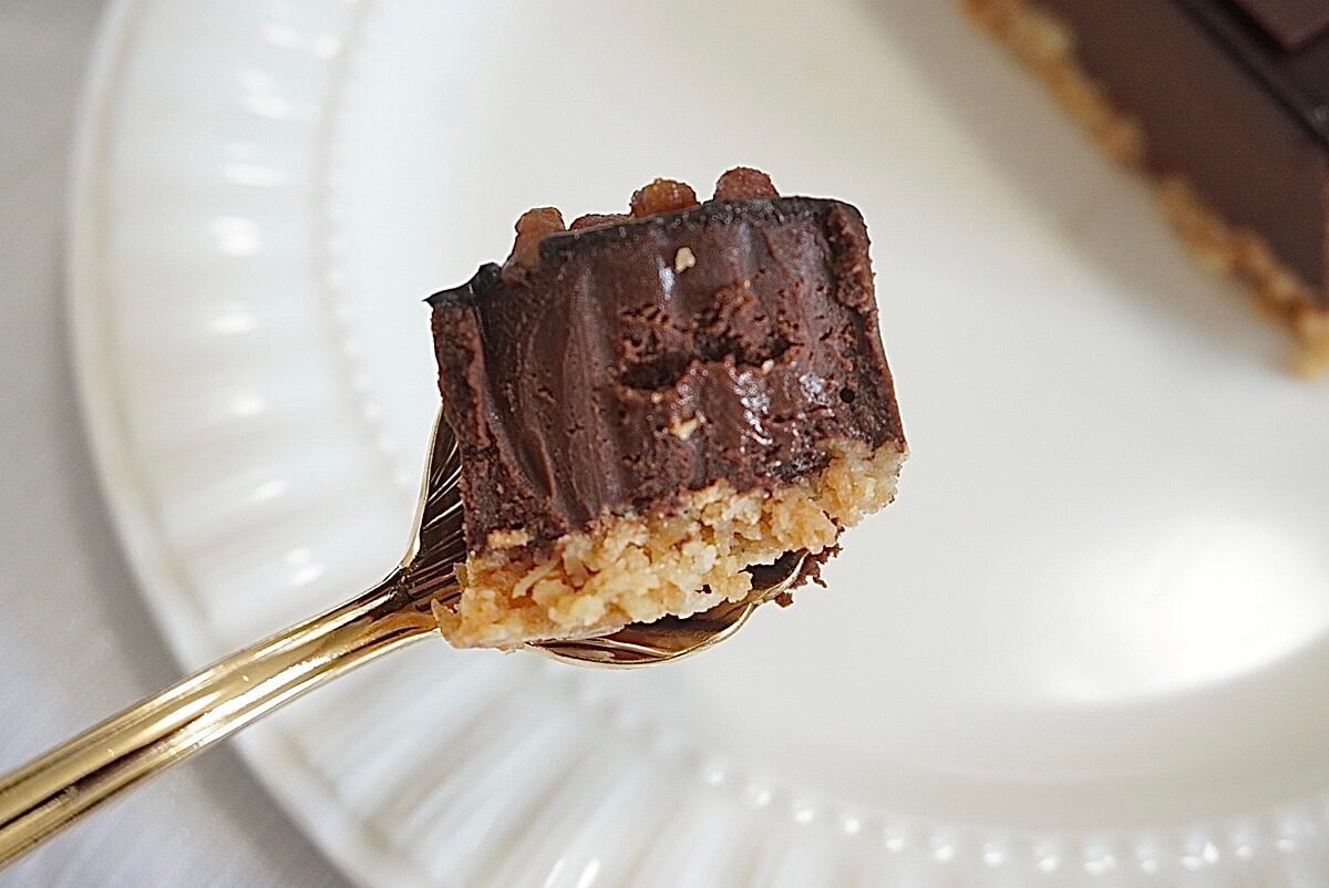 全粒粉のビスキュイの上に、なめらかでコクのあるショコラがオン。キャラメリゼしたナッツがアクセントになっています。