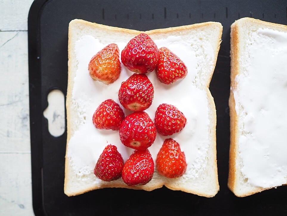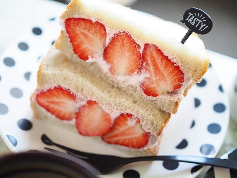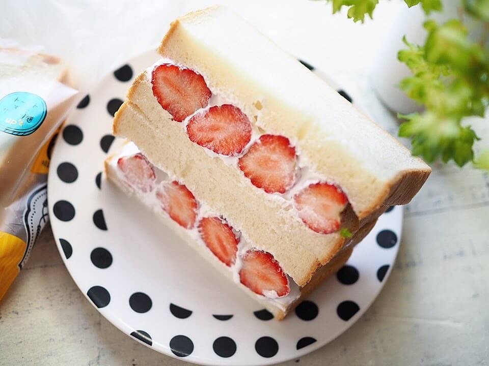 ホイップたっぷりのいちごのフルーツサンドは、まるでいちごのショートケーキのような味わいなので、おやつにもぴったりです。