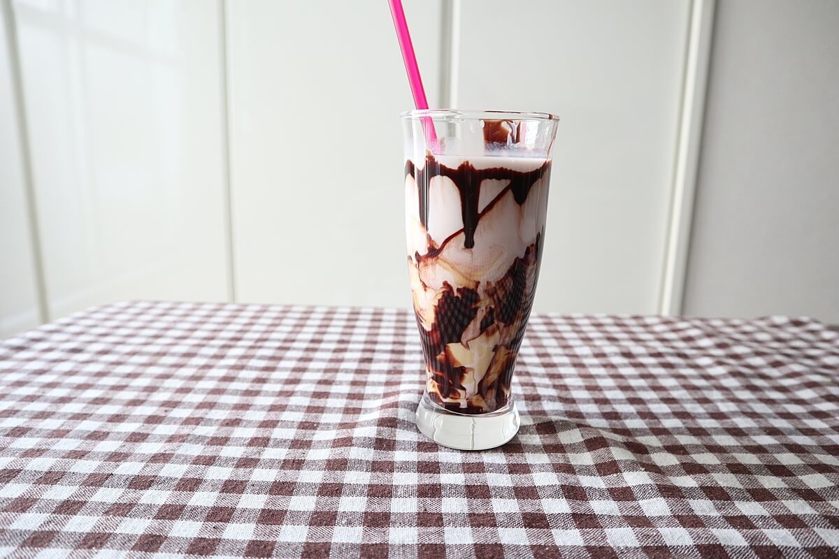 グラスに注ぐ前に、チョコレートソースをグラスの内側に沿っていれてからプリンミルクを入れるとおしゃれな見た目になりますよ!