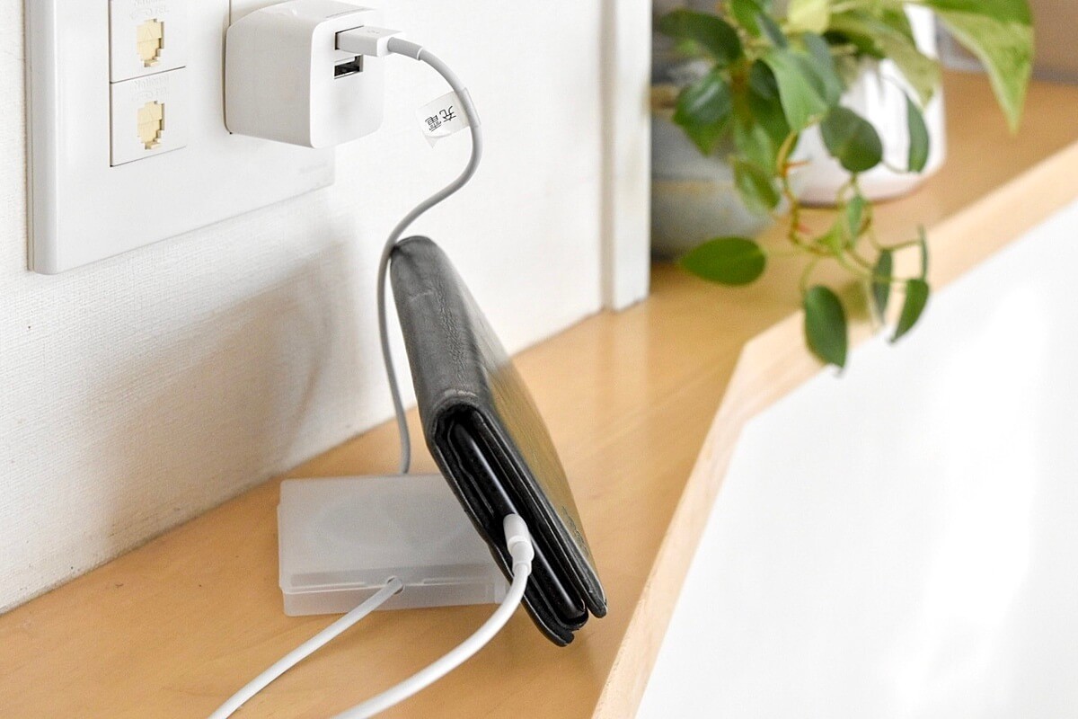 スマホ充電に使うケーブルを収納する方は、スタンド付きタイプが断然おすすめです。