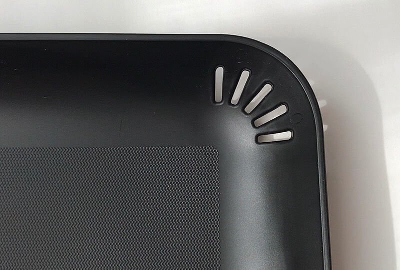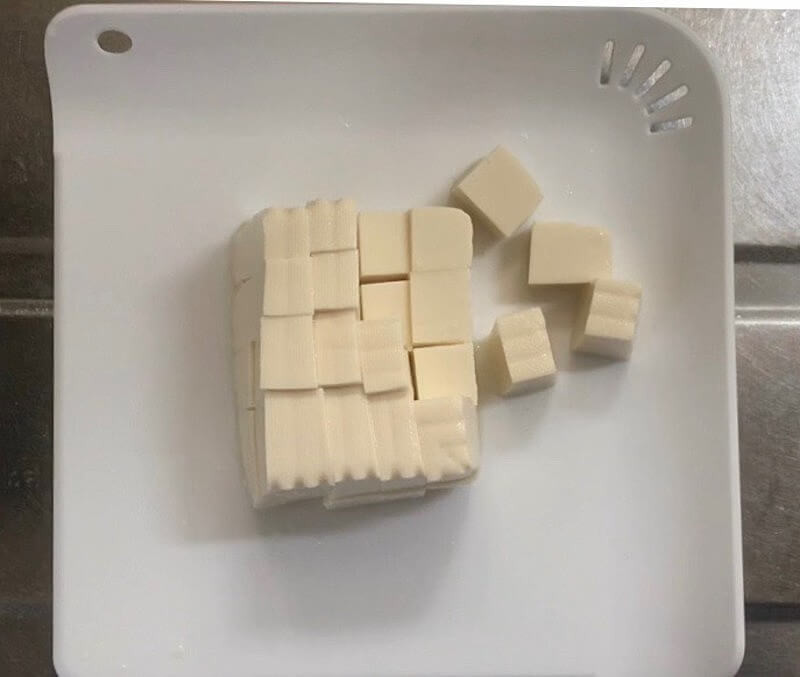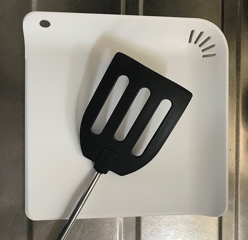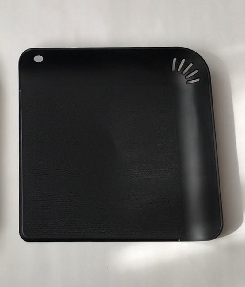 右上は豆腐などの食品の水切りが出来るスリットがついていて、上と右側のサイドは少し傾斜が高くなっているので、切った食材がこぼれ落ちるのを防いでくれる設計に!
