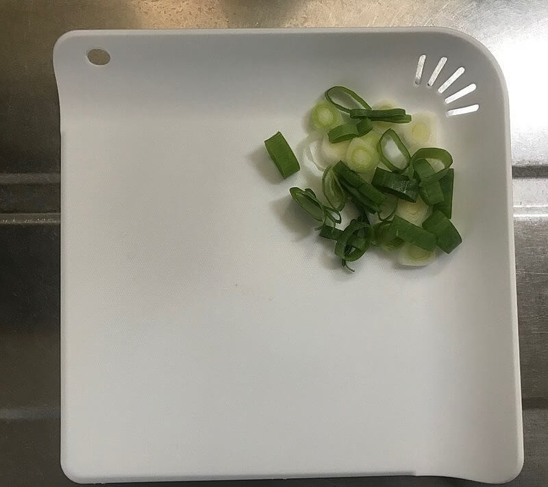 薬味のねぎが足りなくなって、料理が全て終わったあとに追加で切ったりすることがよくあるのですが、そういう時にこのまな板を使えば、ヨイショと、大きなまな板を出す手間が省けます。