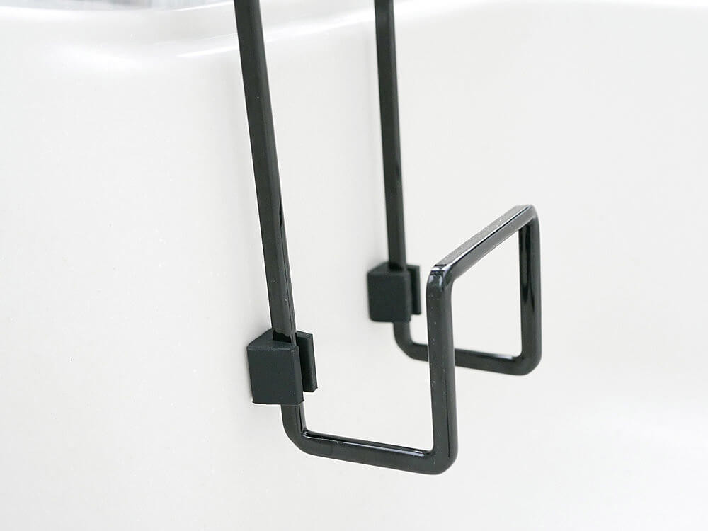 粉体塗装なので防錆力に優れ、傷がつきにくい素材ですが、さらに付属品のクッションもつければ、蛇口やシンクを傷つける心配はありません。