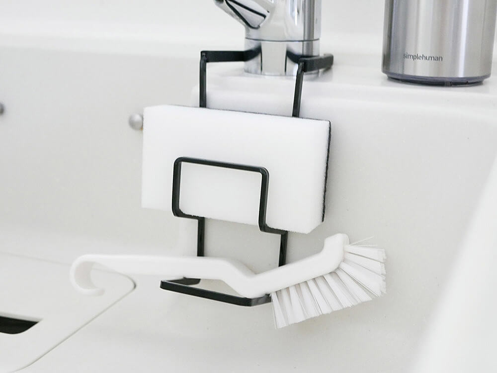 食器を洗うものだからこそ衛生面に気を配りつつ、キッチンのインテリアの邪魔にもならず、スッキリとしたスポンジホルダー、おすすめです。