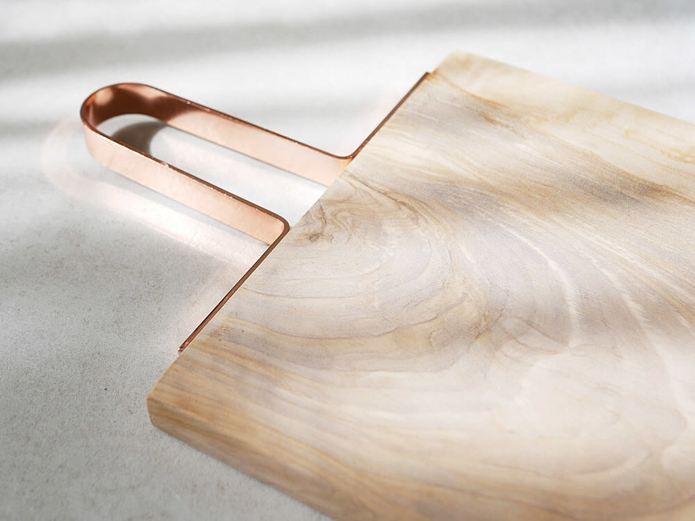 自然そのままの美しい木目と手触りをテーブルに並べれば、たちまちリラックスした印象に早変わり。また、グリップ部分のcopperとの組み合わせが更に食卓をお洒落に引き立ててくれます。