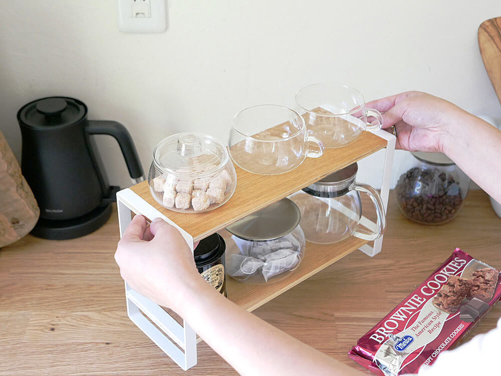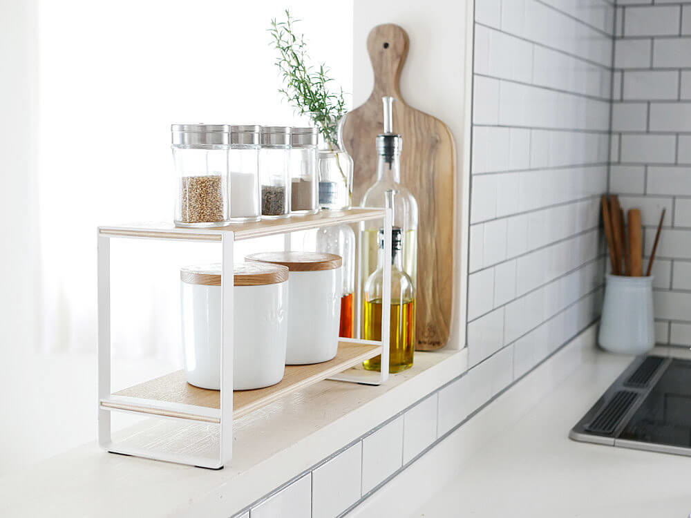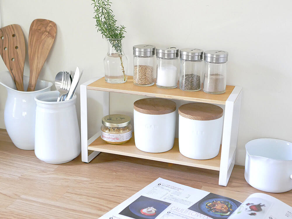 また、食卓で使用頻度の高いお塩や胡椒、お醤油さしなどをセットしておけば、キッチンでもダイニングでも気軽に移動もできる便利なラックです。