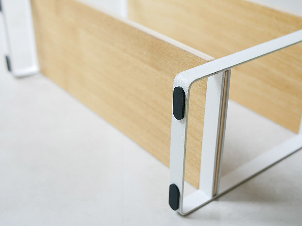 脚部には合成ゴムのマットも付いているので、滑りにくく、傷を付ける心配もありません。ガラスなどの割れやすいモノも安心して収納できますよ。