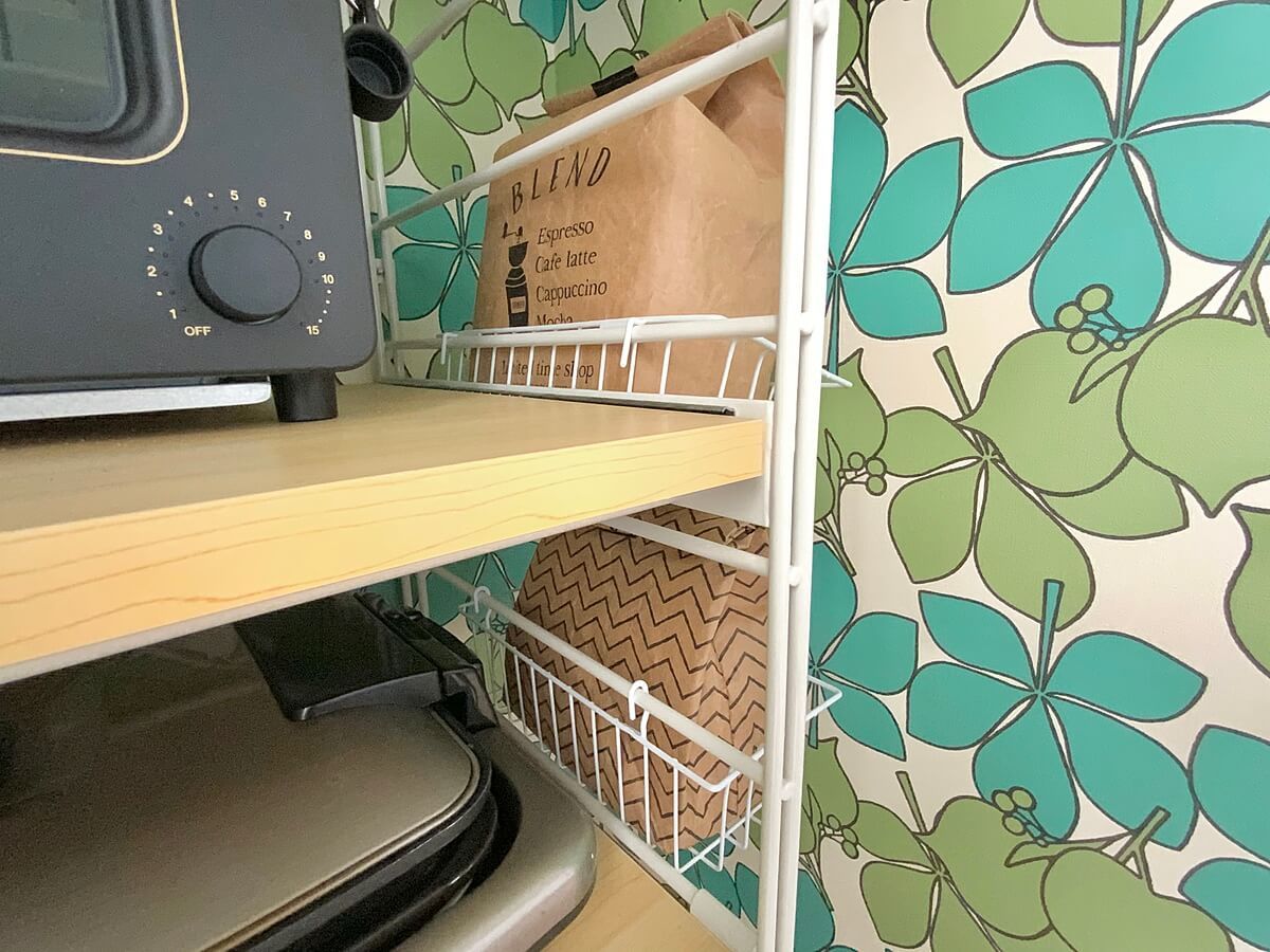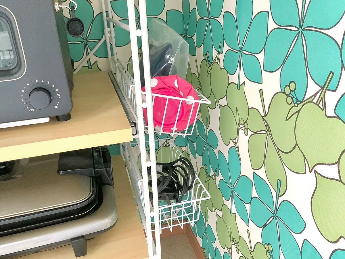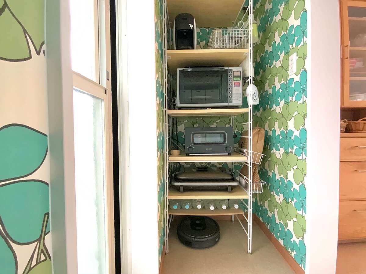 キッチンパントリーの中の家電ラックの側面が、実際の収納場所です。