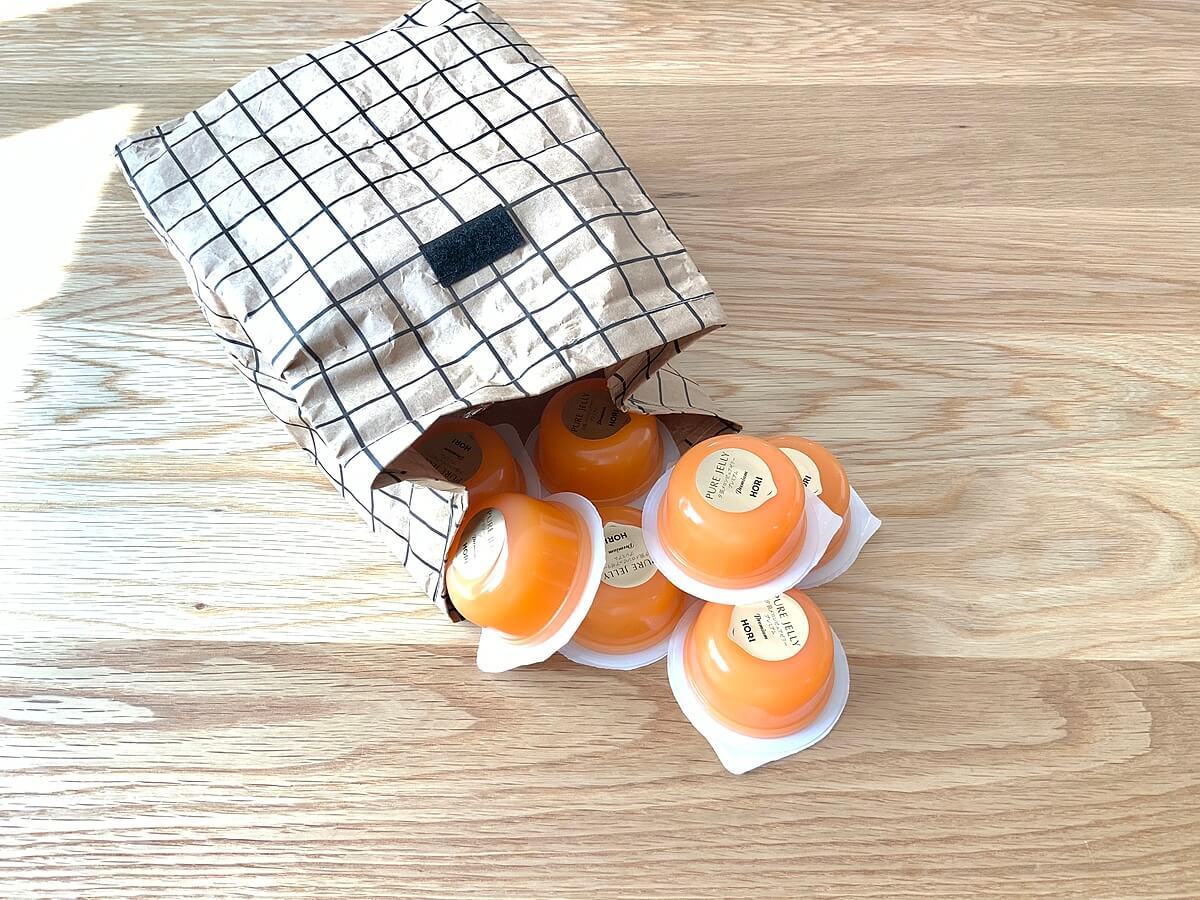 いただいた箱のままだと場所もとってしまうし、そんな時は箱から出してクラフトランチバッグに収納しています。