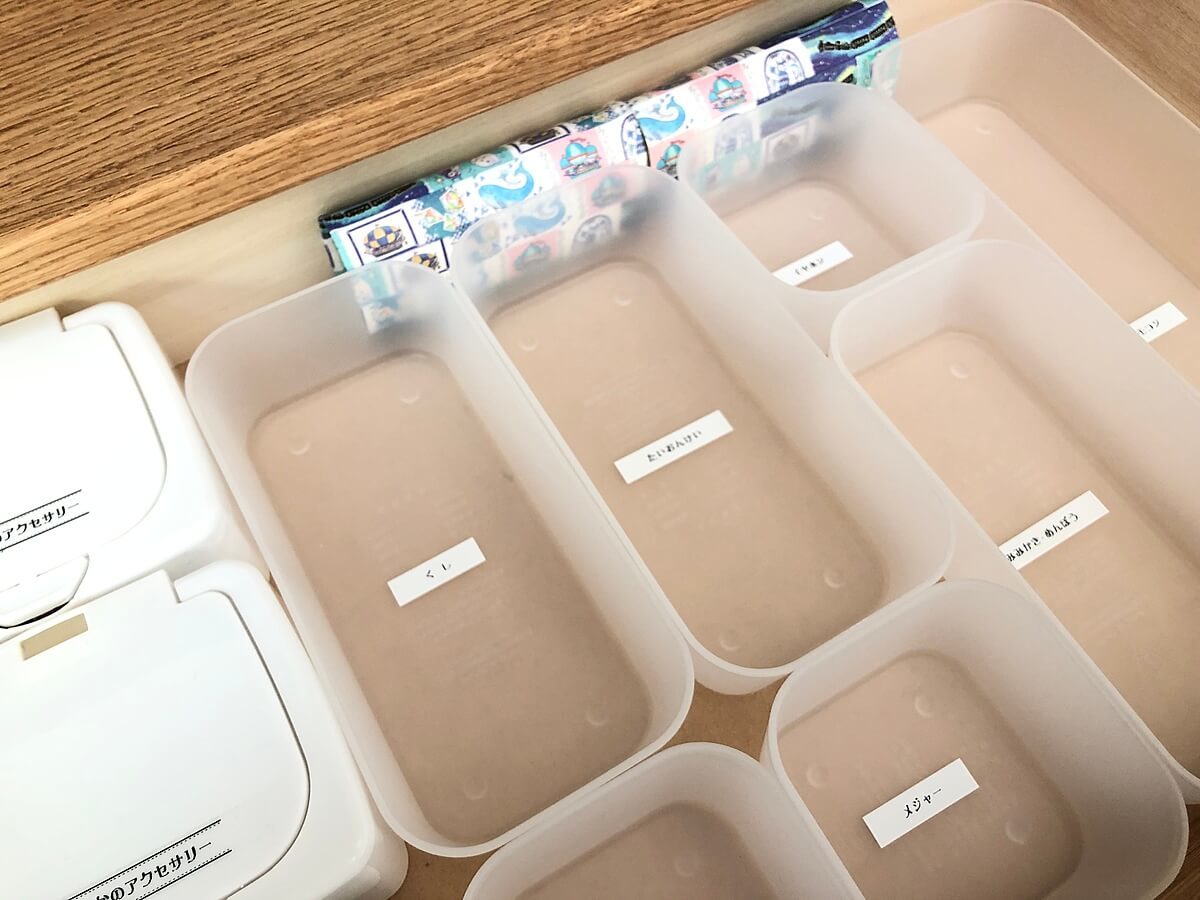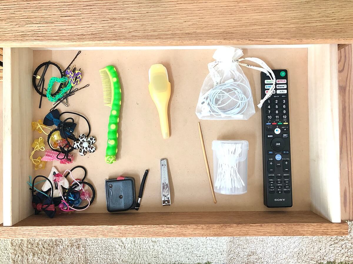 我が家では、少し前にリビングのテレビボードを買い換えました。その際、引き出しの中の収納を見直すことに!