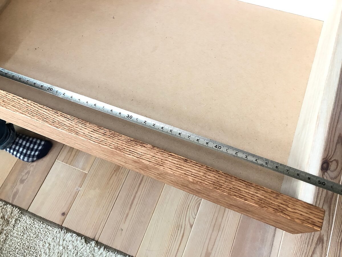 引き出しの大きさを測り、先ほどざっくり区分けした各アイテムたちにそれぞれ必要な大きさを測ります。