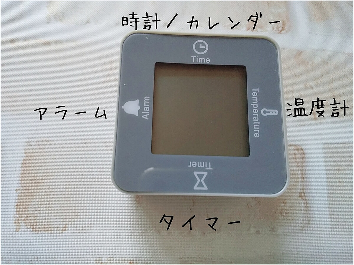 備わっているのは、時計/カレンダー、アラーム、タイマー、温度計の4機能。各機能がイラストで描かれているので、一目で分かりやすくなっています。
