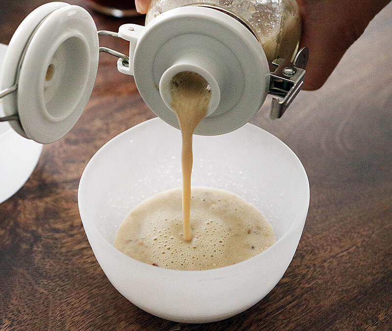 ※今回、めんつゆは2倍濃縮のものを使用しました。3倍濃縮を使う場合は「つゆ80cc:豆乳160cc」のように、水の部分を豆乳やトマトジュースに置き換えOKです。