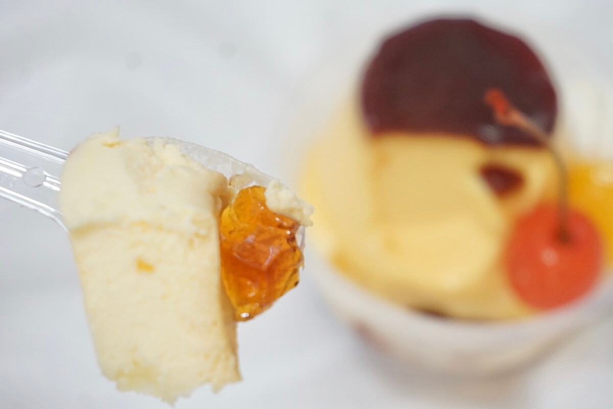この下に入ってるカラメルゼリーはほろ苦で、プリンムースと一緒に食べると相性抜群です。