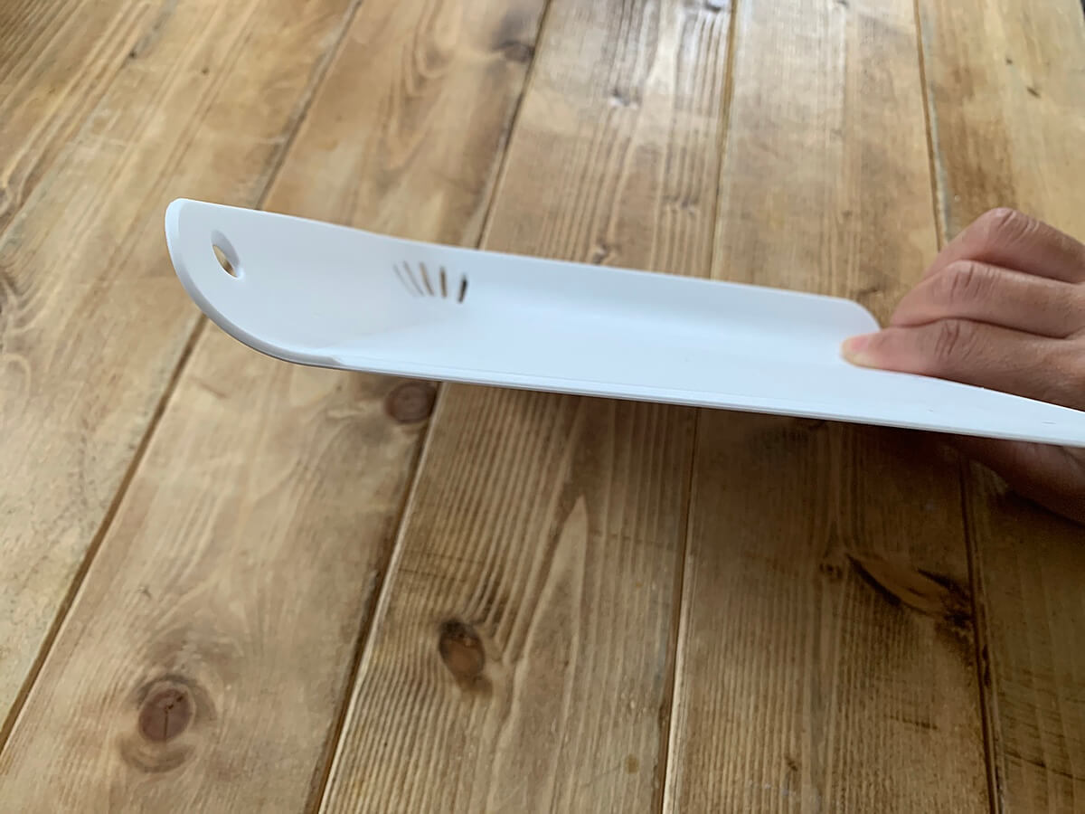 また、角の端に1箇所フック穴が空いているので、吊るして保管出来るので水切りがしやすく乾きやすいです。