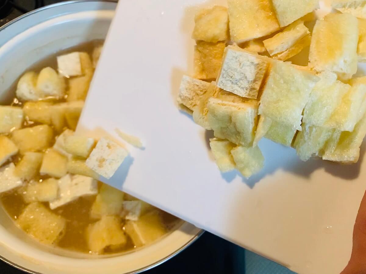 リビングでしゃぶしゃぶをする時、我が家では硬い食材は先に入れて柔らかくします。食材をキッチンのミニサイズまな板でカットし、リビングの鍋まで運ぶのも楽でした。