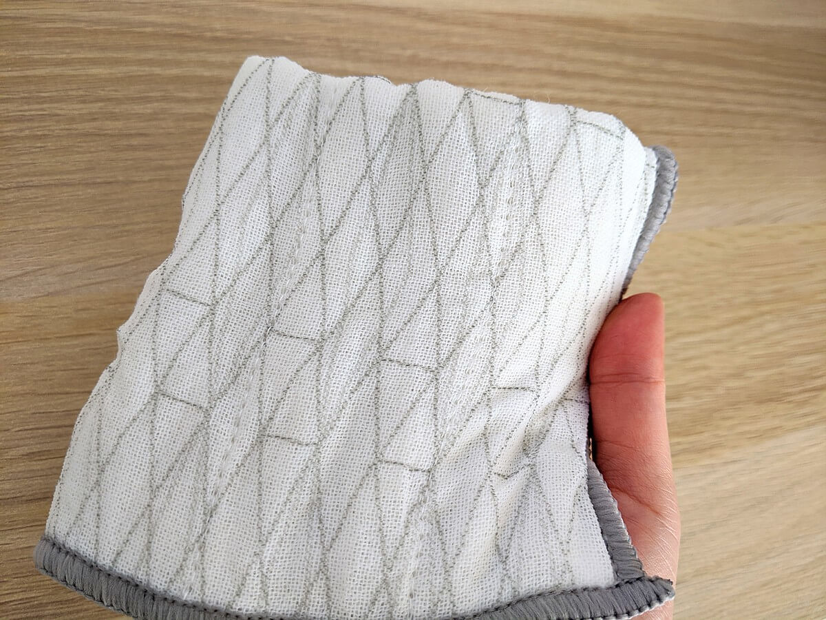 また蚊帳生地は通気性にも優れており、丈夫なうえに肌触りが良いといった特徴もあります。 ですが、かや織りふきんは生地を織るときに糊付けされるため、購入したときはパリッとしたハリのある生地になっています。