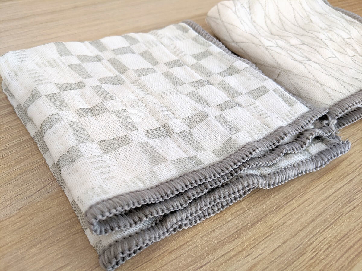 こちらが今セリアで飛ぶように売れている「かや織りふきん」です。 主張しすぎないモノトーンな色合いがとってもおしゃれですよね。